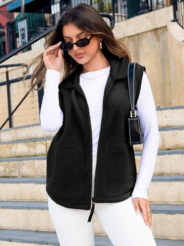 Glamaker Womens Fuzzy Sherpa Fleece Vest Casual Sleeveless Outerwear Travel Zip Up Jacket Lightweight Warm Gilet With Pockets 1