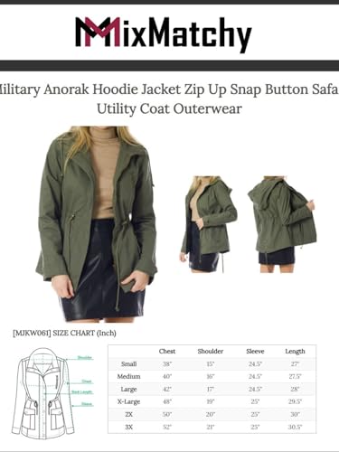 More information about MixMatchy Women's Military Anorak Hoodie Jacket Zip Up Snap Button Safari Utility Coat Outerwear