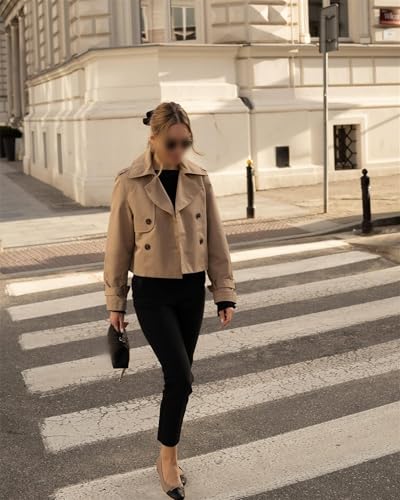 Cropped Trench Coat for Women, Double Breasted Notched Lapel Casual Loose Fit Jackets Cropped Jacket Fashion Outerwear 5