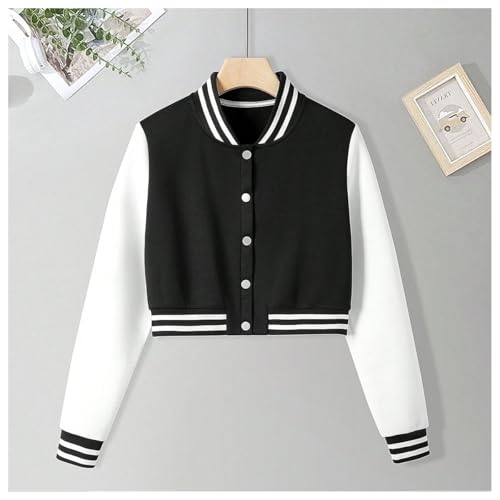 HOT ! MakeMeChic Women's Baseball Collar Color Block Bomber Jacket Long Sleeve Crop Button Down Coats