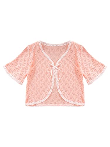Aislor Kid Girls Ruffle Middle Sleeve Hollow Floral Lace Bolero Cardigan Shrug Wedding Party Flower Girl Dress Cover up 6