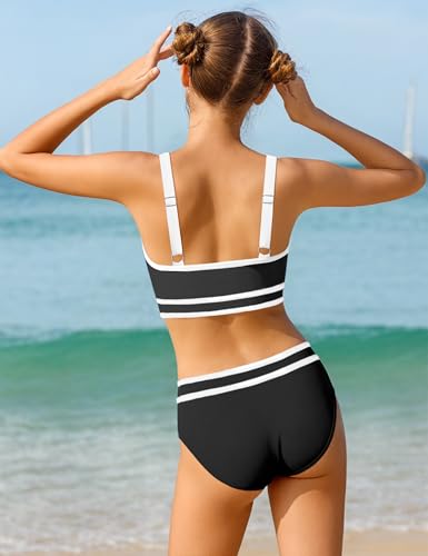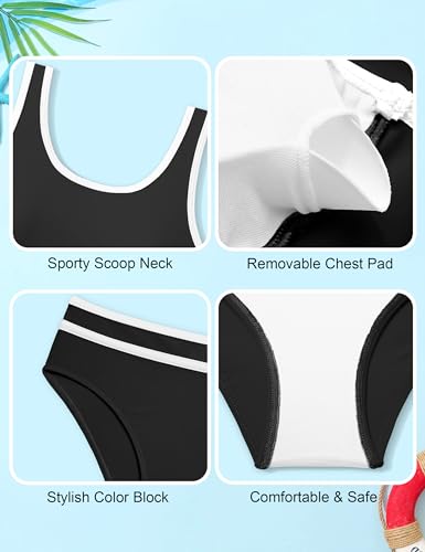• 🐳Excellent Quality Material: The 3 piece girls swimsuit black bikini set showcases a chic and secure double-shoulder strap design. Constructed with a durable blend of 82% Polyamide and 18% Elasthane, the girls swimsuit provides a comfortable fit with ample stretch and resilience. The smooth, quick-drying polyester fabric offers breathability and a gentle touch on the skin, making it an ideal choice for girls swimwear.