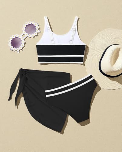 • 🌴 【2025 Eye-Catching Designs】Bathing suits for teens featuring a high-waisted bikini complemented by a silky swim cover up skirt, the adjustable spaghetti strap and sporty bikini top pair perfectly for a flattering and comfortable fit. Also the removable pads add bust supports, enable teen girls to swim freely and confidently in any water environment!