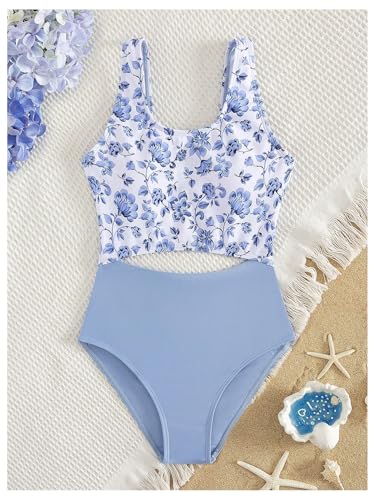 HOT ! Verdusa Girl's Floral Cut Out One Piece Swimsuit Colorblock Sleeveless Bathing Suit
