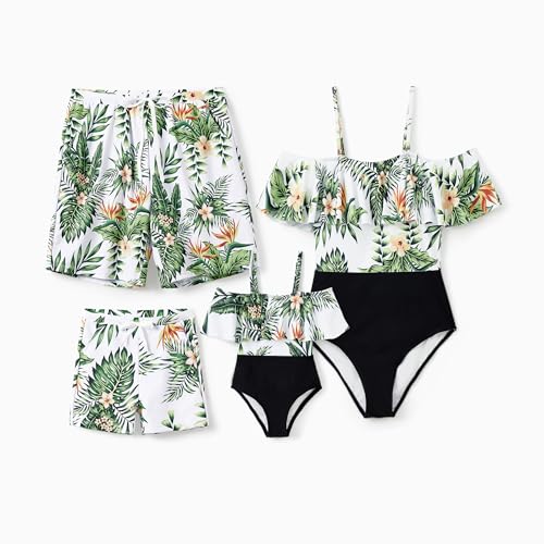 • Matching - Bathing suit for women and girls featuring ruffle and tie side design. Swim trunks for men and boys have drawstring. Matching the same style printing swimsuit with your kids, standing out as a stylish family unit with our tummy control swimwear.