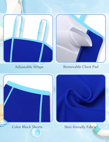 • 【Sporty Bathing Suit】: Stylish contrast trim, unique color block tankini tops and high waisted shorts. Features adjustable straps, sporty crop top and boyshort, and removable padding for a comfortable fit. With vibrant colors and fancy style, our sporty style girls bathing suit adds more summer vibes to girls. Ideal for summer play!