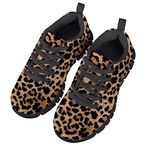 Dellukee Running Shoes for Girls Boys Black Bottom Kids Breathable Athletic Tennis Walking Leopard Sneakers 5