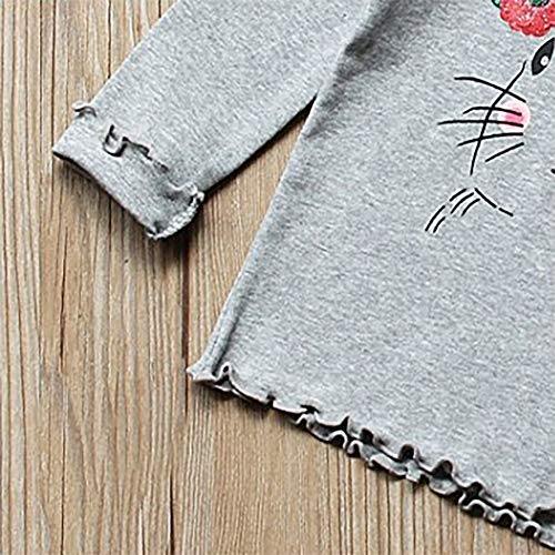 HOT ! Toddler Little Girls Long Sleeve Cotton T-Shirts Bunny Graphic Top Tee Shirts Ruffle Lettuce Edge 7 Gray
