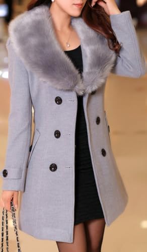 More information about ELFTOWN Women's Double Breasted Midi Long Pea Coat Detachable Faux Fur Collar Long Sleeve Winter Trench Coats with Belt