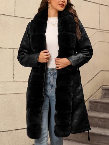 Bellivera Women Faux Leather Winter Trendy Jacket Thick Shearling Lined Coat with Belt 1