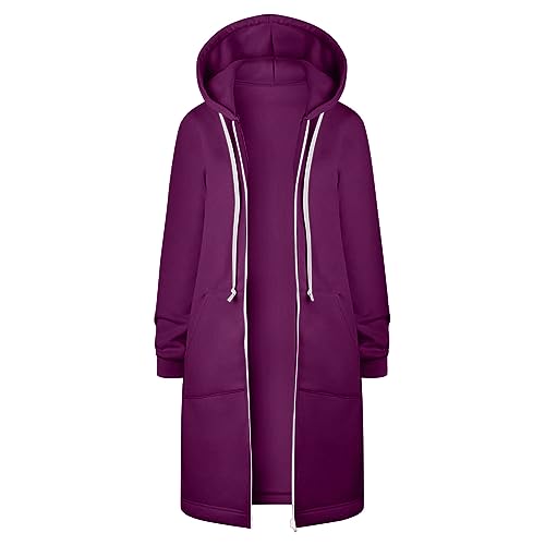 HOT ! Long Hoodies for Women Zipper Fleece Hooded Jacket Fall/Winter Lightweight Casual Tunic Sweatshirts with Pockets