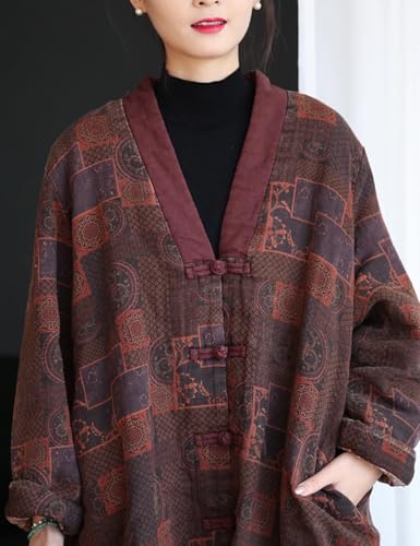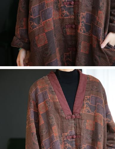 NFYM Womens Knee Length Quilted Kimono Jackets Winter Warm Soft Cotton Printed Boho Vintage Loose Outwear Coats 6