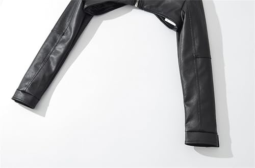 JEKE-DG Women's Super Crop Faux Leather Coat Zip Up Fashion Moto Biker Coat Jacket Slim Fit Stand Collar Outdoor Coats 7