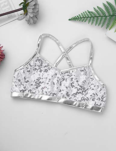 Hularka Kid Girl 2PCS Shiny Sequins Tankini Sport Dance Outfits Criss Cross Back Top Tanks with Bottoms Leotard Swimwear 6