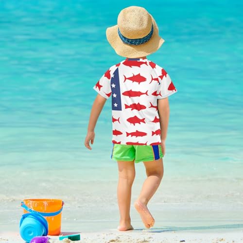 Aflyko 4th of July Kid Rashguard Shirt Shark American Flag Boys Girls Swimsuit Top 4