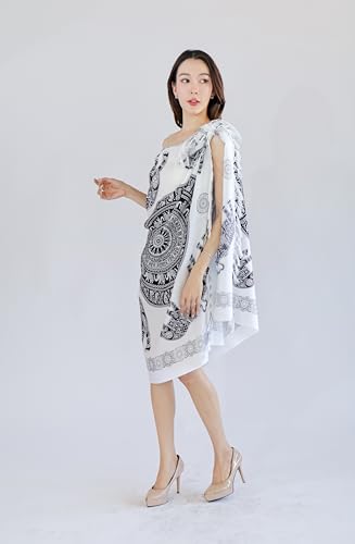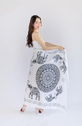 Elephant Print White Sarong Wrap – One Size Beach Bath Swim Cover Up Pareo 5