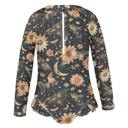 CaTaKu Girls One Piece Swimsuit Halloween Bat Sunflower Toddler Bathing Suit Long Sleeve UPF 50+ Rash Guard Swimwear 3-12Y 1