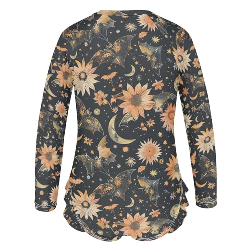 CaTaKu Girls One Piece Swimsuit Halloween Bat Sunflower Toddler Bathing Suit Long Sleeve UPF 50+ Rash Guard Swimwear 3-12Y 6