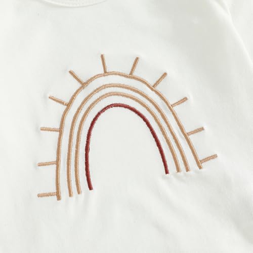 • 🌈Design: Newborn baby girl rainbow outfits .The baby clothing set for girls; The romper features rainbow embroidery was cute for baby girl wear; The shorts feature double ruffles and a decorative bow make baby girl be a little princess; Paired with a headband and stockings was adding a touch of cuteness and fashion.infant fall outfit girl,fall clothes for baby girl,baby girl fall clothes,baby fall clothes girl