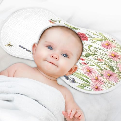 Watercolor Wildflowers Burp Cloths Cotton Baby Washcloths,Large 22x11in Burping Cloth Absorbent and Soft for Newborn Baby Boys and Girls,1 Pack 5