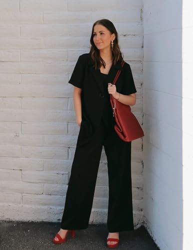 HOT ! ZESICA Women's 2025 Casual 2 Piece Outfits Short Sleeve Blazer Jacket and Wide Leg Pants Loose Business Suit Sets