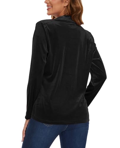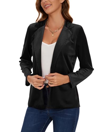• 【FEATURE】: Long sleeve open front velvet blazer with two functional pockets, button closure, notched lapel velvet blazer for womens dressy casual. Whether you're dressing up a pair of jeans or adding a layer of sophistication to your business-ready look, the sleek silhouette and stretch comfy fabric of this velour blazer make it the perfect choice for professional style and comfort.