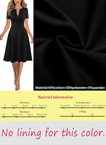 More information about VFSHOW Womens Summer Work Business Dresses Pleated Crew Neck Front Zipper Button Office Slim A-line Fit and Flare Dress