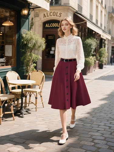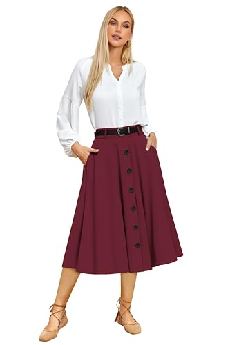 • Features: This women a-line vintage skirts has a retro and elegant silhouette, 7 decorative buttons on the front, a removable quality belt, side pockets, and an elastic band on the back waist to accommodate a variety of body shapes