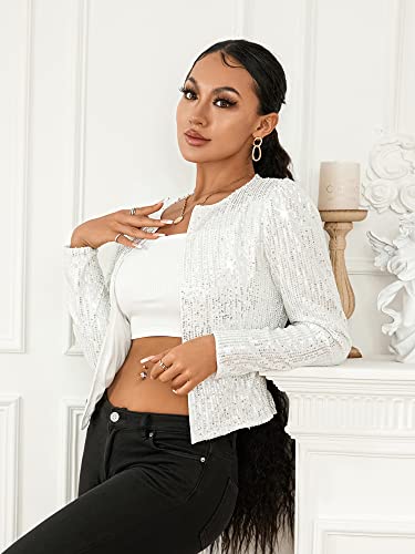 Women Casual Sequin Jacket Long Sleeve Open Front Glitter Cropped Blazer Bolero Shrug Coat 6