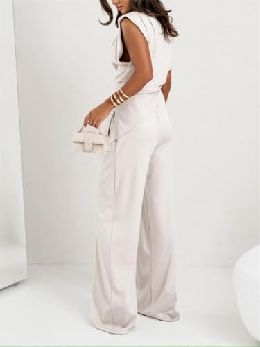 • High-rise elastic waistband: Elevate casual style with this chic sleeveless pantsuit featuring a modern crewneck vest and flowy wide-leg trousers, designed for effortless summer sophistication