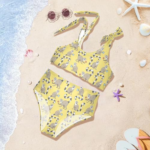 Toddler Girls Bikini Set Cartoon Ring Tailed Lemurs Swimsuits Kid Bowknot Swimwear 2 Piece Bathing Suit 3-12T 4