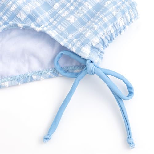 • This two-piece swimwear includes a plaid pattern top with a spaghetti strape design, adjustable strap for the perfect fit, and cute bottoms with tie side. The high elastic fabric ensures easy movement, making it ideal for beach and pool outings.