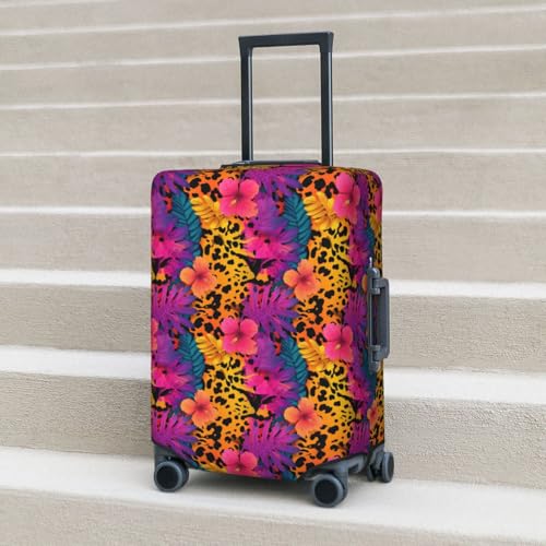 HOT ! Colorful Leopard Print Tropical Flowers Elastic Travel Luggage Covers Dustproof Scratch-Resistant Suitcase Protector Fit 22-24 Inch