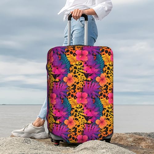 Colorful Leopard Print Tropical Flowers Elastic Travel Luggage Covers Dustproof Scratch-Resistant Suitcase Protector Fit 22-24 Inch 7