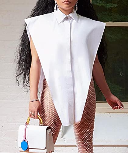 Sexyshine Women's Sexy Sleeveless Button Down Blouse Turn Down Collar Oversize T Shirts Irregular Vest Tops Clubwear 3
