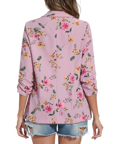 MINTLIMIT Chiffon Blazers for Women Dressy Shawl Collar Blazer Jacket Open Front Casual Fitted Suit Jackets(Floral Pink, M) 4