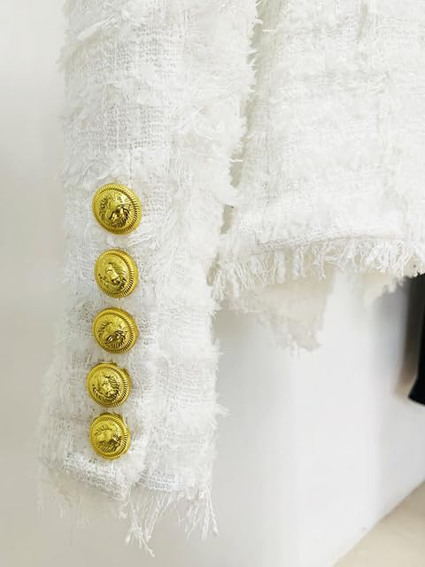 Designer Jacket Women's Slim Fit Tassel Fringed Tweed Blazer 6