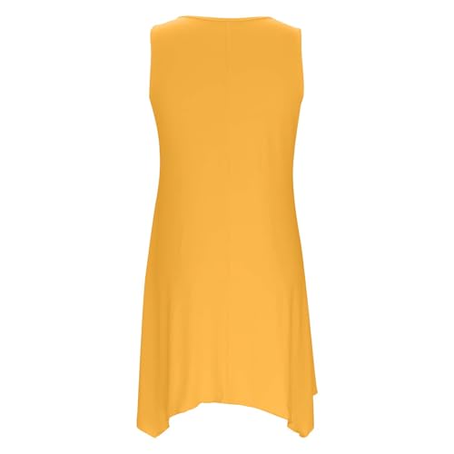 HOT ! HGps8w Women's Handkerchief Hem Summer O-Ring Tank Dress, Plus Size Casual V Neck Loose Sleeveless Beach Mini Dresses