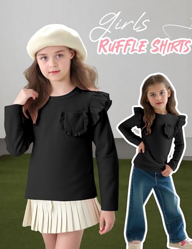 Girls Long Sleeve T-Shirt Toddler Comfort Soft Thick Basic Crewneck Tee Tops with Ruffles Trim 1