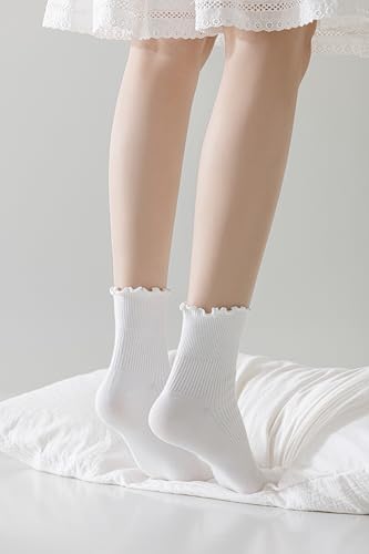 Ruffle Turn-Cuff Socks Women, Casual Cute Girl Ruffle Crew Socks Breathable Cool Frilly Socks 5