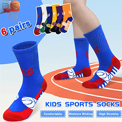 GRPSKCOS Kids Socks Basketball Athletic Outdoor Football 6 Pairs Hiking Sports Socks for Boys Girls 5-14 Years 6