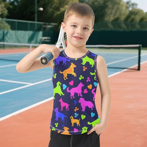 Boys' Tank Top Shirt Colorful Dogs Hearts and Paw Prints Pattern Sleeveless T-Shirts 4