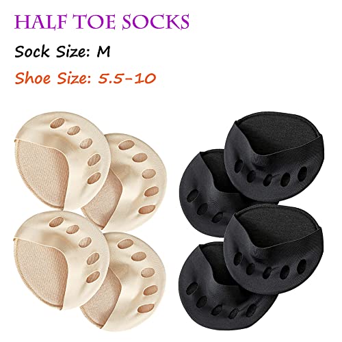 • FITS SIZE: You will receive 4 pairs of forefoot toe socks, 2 pairs of nude colored and 2 pairs of black. The toe pad socks are size 5.5-10 and fit most women. Different colors, you can choose according to your preference.