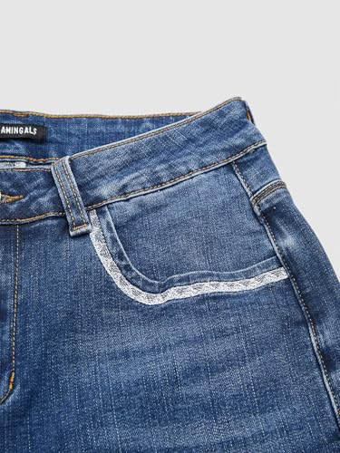 Flamingals Women Mid Waist Skinny Crop Jeans Raw Hem Wash Stretch Active Denim 6