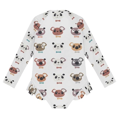 Cute Teddy Bear Girls Long Sleeve Rashguard Swimsuit UV Protection One-Piece Swimwear Bathing Suit B0404231 5